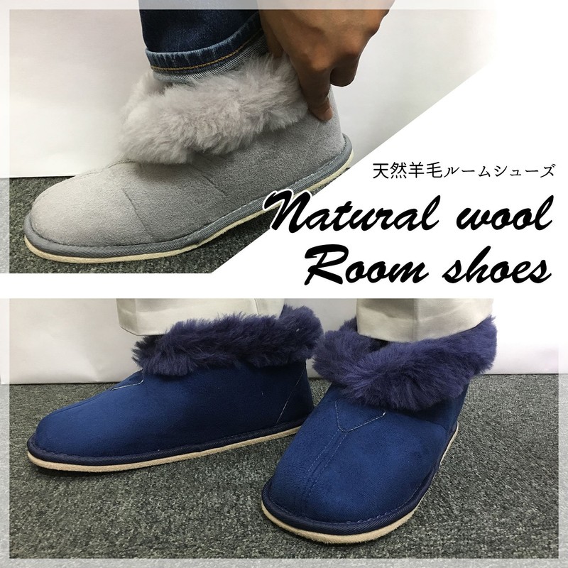- These natural wool room shoes are eco-friendly and comfortable to keep you warm even without floor heating. These are classic winter room shoes with a fluffy and gentle texture. The large size makes it loose and comfortable to wear. Natural-wool slippers are very easy to wear as well as warm