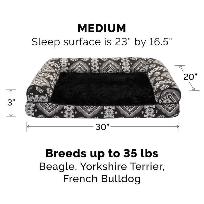 Furhaven Cooling Gel Dog Bed for Medium/Small Dogs w/ Removable Bolsters & Washable Cover, For Dogs Up to 35 lbs - Plush & Southwest Kilim Woven Decor Sofa - Black Medallion, Medium