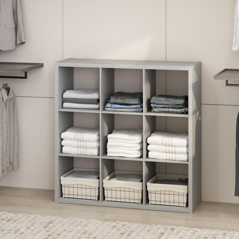 Furinno Cubic Open Back Multipurpose Clothing & Closet Storage Organizer Shelf, 9-Cube, Light Grey