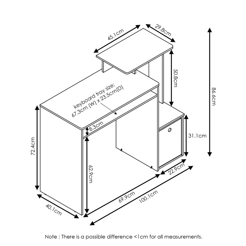 - Home office essential: comes with keyboard tray and non-woven bin for storage
