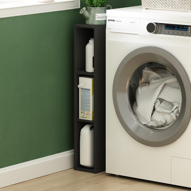 Furinno Fulda 3-Tier Space Saving Storage Shelf Bookcase, 6-Inch Width, Blackwood