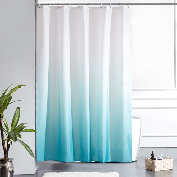 Furlinic Shower Curtain, Bathroom Curtain, Textile, Made of Polyester Fabric, Mould-Resistant, Waterproof, Washable, for Shower, Bath, 150 x 180 cm, White to Aquamarine, with 10 Shower Curtain Rings