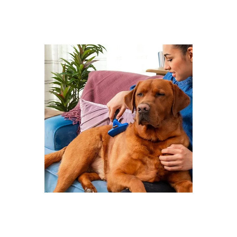El Furminator Deslanador para Perro Grande con Pelo Largo es el aliado perfecto para mantener el pelaje de tu mascota en las mejores condiciones. Diseñado para razas grandes, este cepillo deslanador cuenta con cerdas de acero inoxidable que penetran profundamente en el pelaje largo de tu perro, eliminando eficazmente el pelo suelto y reduciendo la muda hasta en un 90%. Su formato de deslanador permite un cepillado cómodo y eficiente, facilitando la tarea de cuidado del pelaje. Además, su función quitapelos asegura una limpieza completa, dejando el pelaje de tu mascota suave y brillante. Este producto es ideal para aquellos dueños de mascotas que buscan mantener un hogar limpio y una mascota saludable. Talla L. Modelo: Deslanador. Recomendado para perros con pelaje largo.