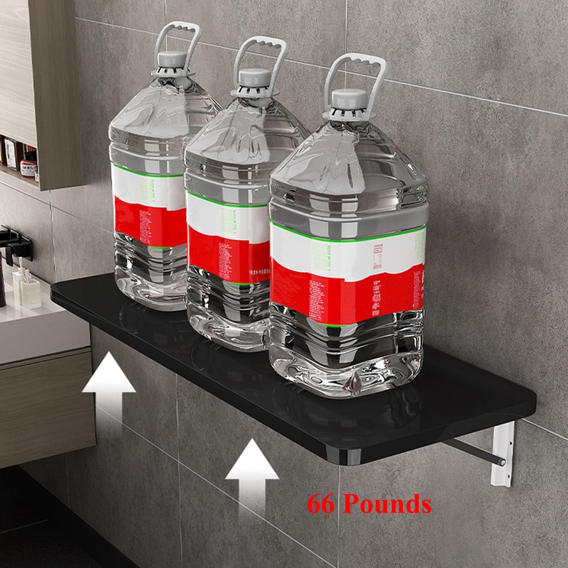 The wall mounted table does easy installation required and is supported by 0.7 "thick density board,which is very sturdy, It's also easy to clean and maintain, ensuring long-lasting use. The triangle structure of the brackets built into this wall mounted drop down table reinforces structural stability, providing you with a firm, locked in, and substantial surface.with a modern and minimalist design that will fit seamlessly into any decor.
