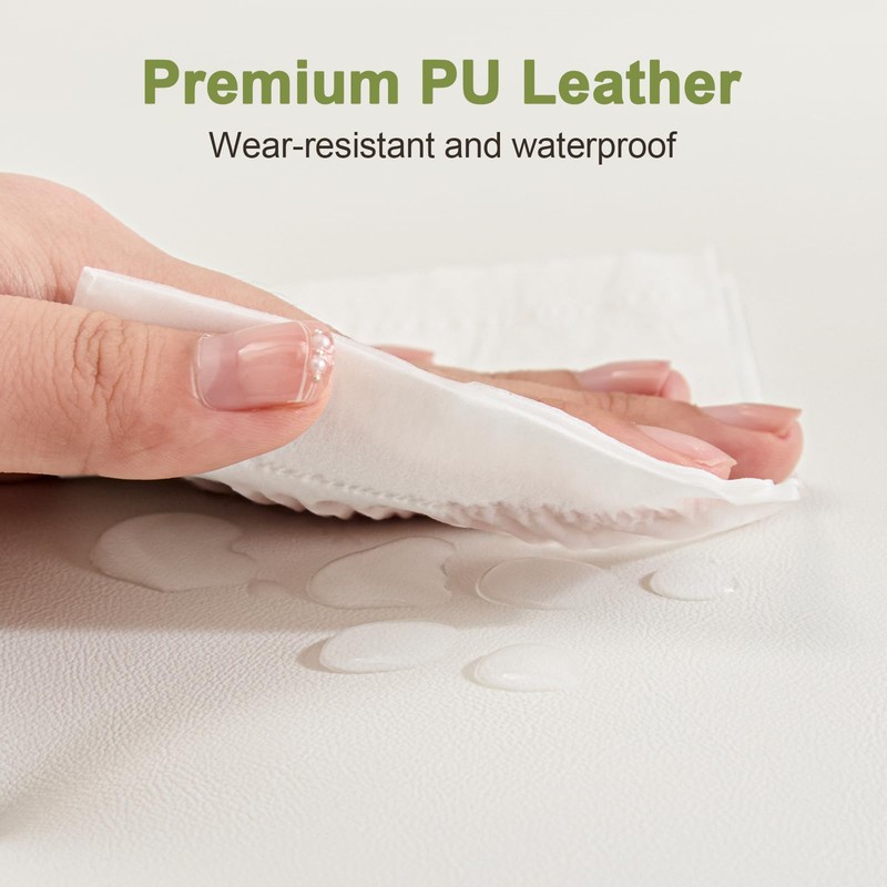 - [Supportive Comfort] - Sink into plush, high-resilience foam cushions wrapped in premium, easy-clean PU leather (with chic contrast stitching), wear-resistant and waterproof. Feel supported and refreshed, even during marathon work sessions or long hours at your vanity.