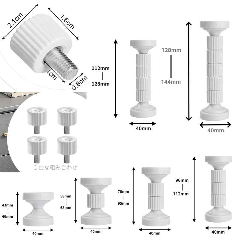 - 【Adjustable Height】 Supports a height of 1.6 - 5.7 inches (4.2 - 14.4 cm), and the number of nuts can be changed according to the width of the gap. Each nut is about 2.6cm in length and height can be adjusted freely. Available in 3 colors: black, white and pink
