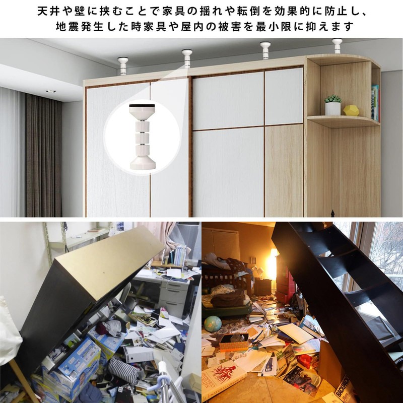 - [Earthquake Prevention] By placing it in the gap between furniture and walls and ceiling, it is suitable for a wide range of uses, such as beds, drawers, tables, bookcases, cabinets, cupboards, altar, drawers, laundry, refrigerators, etc. It is an indispensable disaster prevention item for everyday use in spring, summer, autumn, and winter by preventing furniture from falling over and minimizing damage to furniture and interior during an earthquake. Can be used in households, living rooms, bedrooms, kitchens, bathrooms, restaurants, hotels, B&B and more!
