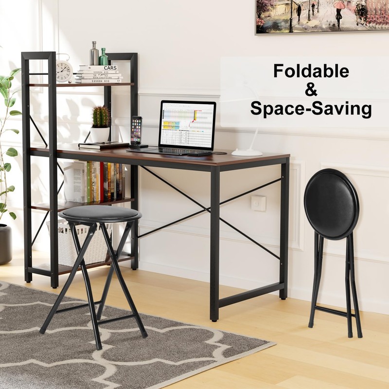 FurnitureR Folding Stools Set of 4, 18-Inch Backless Stool Chairs Collapsible Padded Round Portable for Indoor/Outdoor, Metal Frame, PVC Cushion, No Assembly Required, Black
