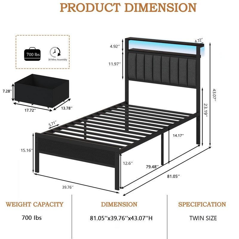 - Under Bed Storage Drawers: Maximize your bedroom space with our innovative twin size platform bed designed with two under bed storage drawers on wheels. These lightweight containers are perfect for organizing toys, clothes, or bedding, keeping your room tidy and clutter-free while providing easy access whenever needed.