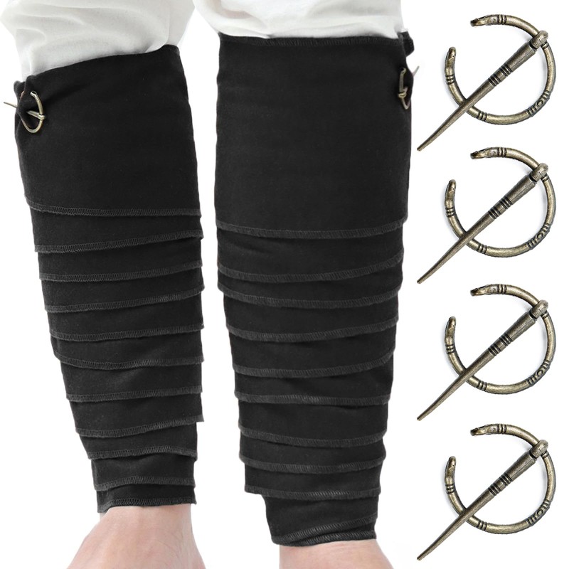 FURPHI Medieval Leg Wraps Woolen Puttees for Men with Brooch Pins Pirate Cosplay Accessary (Black)