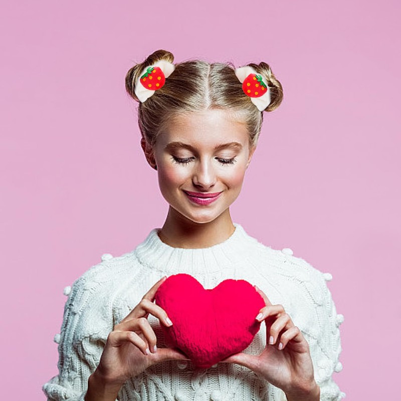 - 【Soft Material】- The fuzzy strawberry scrunchies for kids is made of soft faux fur which makes minimal pulling on the hair and do not hurt your hair. The hair scrunchies are great for holding your hair on place.