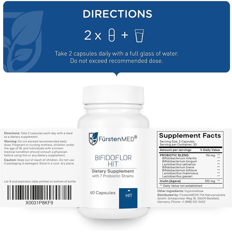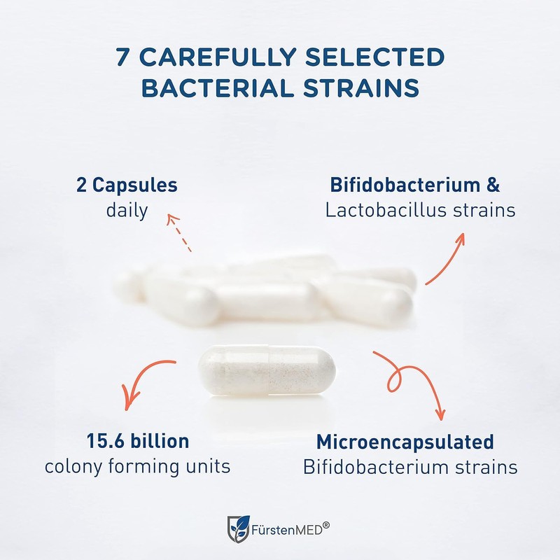FürstenMED® Bifidoflor HIT with 7 Probiotic Strains - Lactobacillus Salivarius, Gasseri, Rhamnosus & 4 Bifidobacterium - Normal Gut Digestive Health Support Supplement - 60 Vegan Capsules