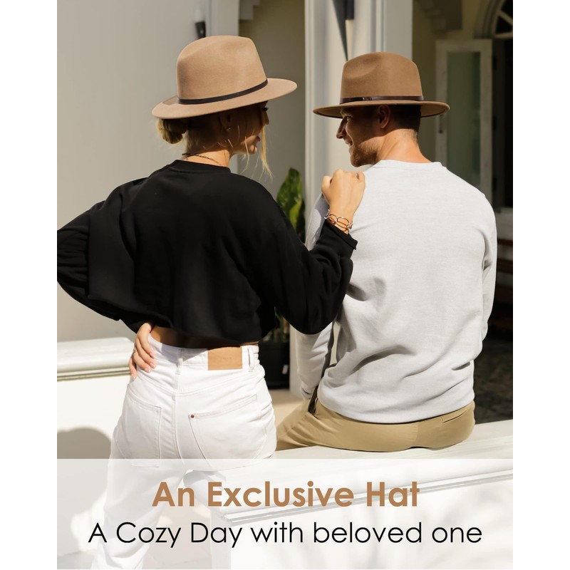 FURTALK Fedora Hats for Men Women 100% Australian Wool Felt Wide Brim Hat Leather Belt Crushable Packable
