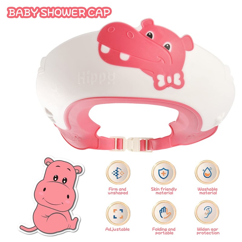 - 【ADJUSTABLE】Adjustable hippo shower visor designed for baby, soft and comfortable and stretchy enough.Elastic Silicone and rim , easy to slip on and off tot’s head, no water leakage. Let kids fall in love with bathing and shampoo.