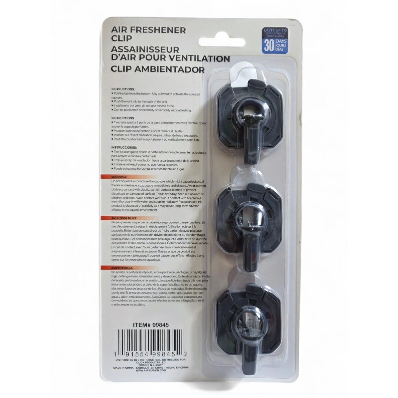 Fusion 3pc Air Fusion Car/Automotive Air Freshener Vent Clip 4ml New Car Scent