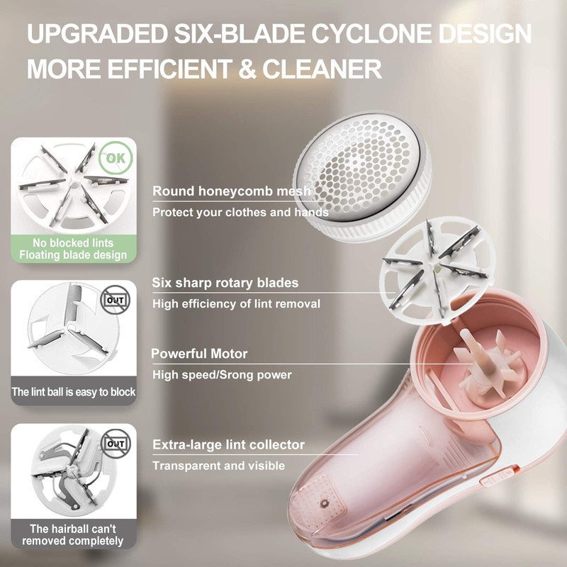 ❀ Schneller und effizienter: Ausgestattet mit scharf drehenden Sechsblättern und 1 Ersatzklinge. Entfernen Sie Stoffflusen, Flusen und Bommeln in Sekundenschnelle.