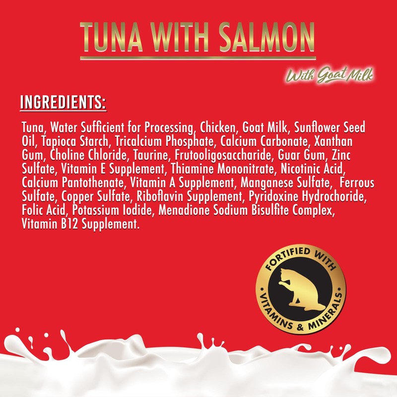 - Yummy pieces of tuna and chicken are served in a creamy goat milk gravy.