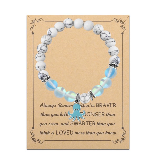 - SIZE&MATERIAL: Octopus gifts for adults bracelet inner diameter: 3.5 inches, is an adjustable bracelet that fits most women's wrists. Made from natural beads, it is safe for those with sensitive skin. Natural stone beads may be slightly different in each color.