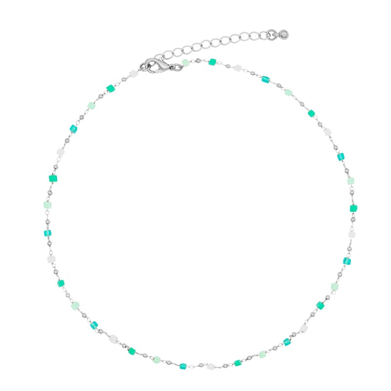 FUTIMELY Bohemia Green Beaded Beads Choker Necklace for Women,Simple Fresh Silver Beaded Square Round Bead Choker Necklace Fashion Jewelry