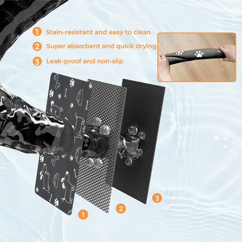 - Rutschfest und Auslaufsicher: Die saugfähige schnelltrocknend futtermatten für haustier hat eine rutschfeste gummiunterseite, die fest auf dem boden haftet und auch dann an ort und stelle bleibt, wenn sie von aktiven haustieren verschoben wird. die wasserdichte schicht verhindert das eindringen von flüssigkeiten, wodurch korrosion und abnutzung des bodens vermieden werden und die sicherheit im haushalt erhöht wird.
