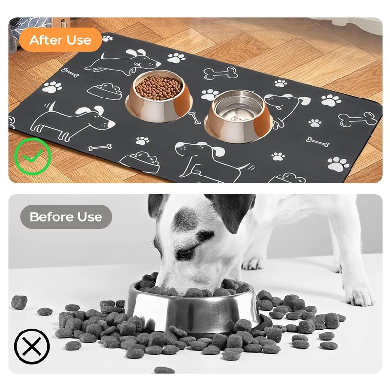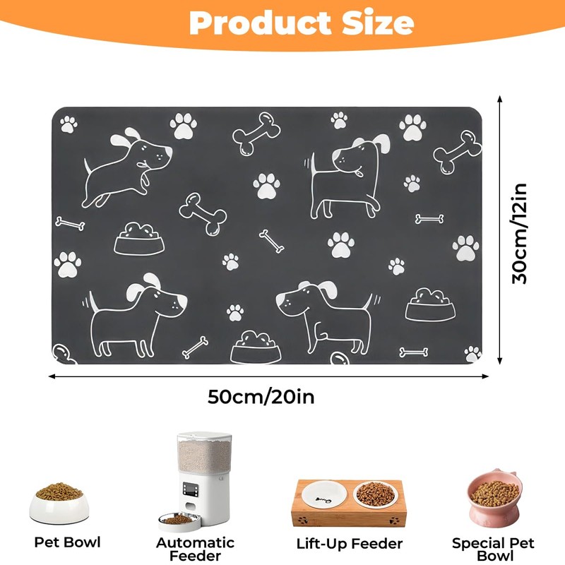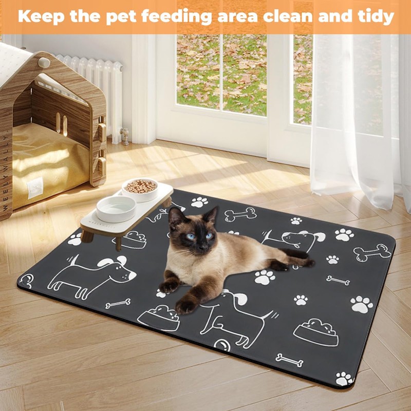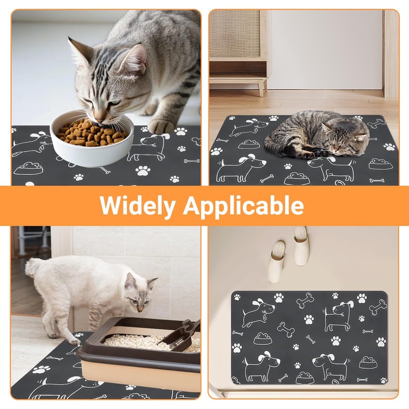 - Anpassungsfähigkeit an Verschiedene Szenarien: Die grau große haustier fütterung matte eignet sich für fressnäpfe und automatische futterautomaten für katzen, hunde, kaninchen und mäuse und kann auch als trockenmatte oder dekorative matte verwendet werden, die zu verschiedenen einrichtungsstilen passt. ihr vielseitiges design erfüllt unterschiedliche bedürfnisse.