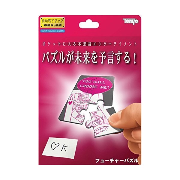 Then you assemble the pieces of the puzzle and inexplicably they form the image of the card chosen by the viewer!
