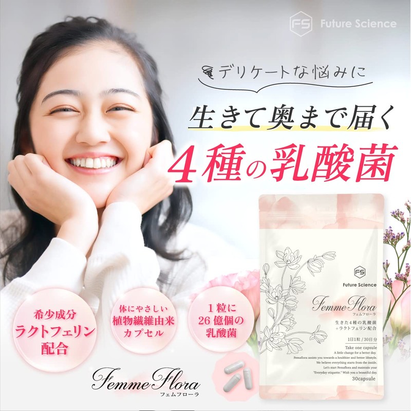 Future Science フェムフローラ 女性用 乳酸菌 サプリ (30粒 / 30日分) デリケートゾーン 不快感 ・ 臭い (ラクトバチルス ラクトフェリン 配合) 腸溶性 膣内環境