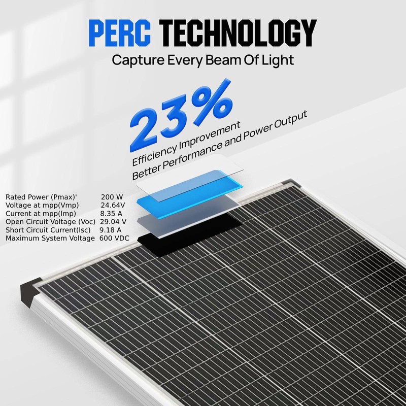 Harness the power of the sun with this 200-watt solar panel. Designed for efficient energy conversion, this panel captures sunlight and transforms it into clean, renewable electricity for your home or off-grid applications. Constructed with durable materials and a weather-resistant casing, it withstands harsh outdoor conditions. With its sleek, low-profile design, the panel seamlessly integrates into your outdoor space. Maximize your energy savings and reduce your carbon footprint with this high-performance solar panel. Easy to install and maintain, it's an investment in sustainable living.
