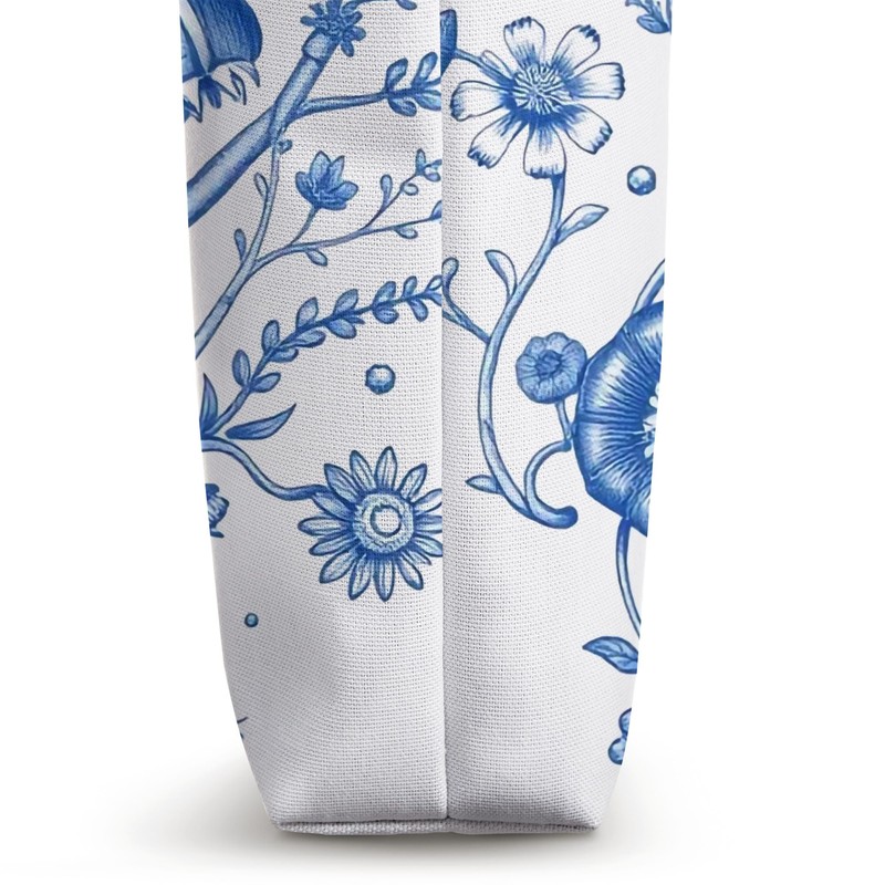 - 16” x 16” bag with two 14” long and 1” wide black cotton webbing strap handles.