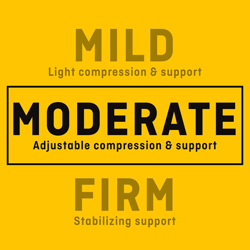 - Design offers customizable levels of moderate compression and support