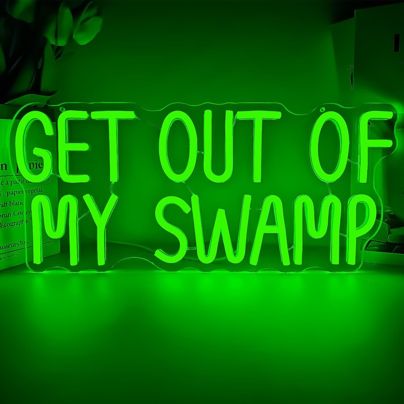 - Can Be Hung: Get out of my swamp neon sign for bedroom has two reserved holes, and the package comes with a chain with hooks, so you can hang the light up signs for wall decor or place light signs wall decor on a flat surface