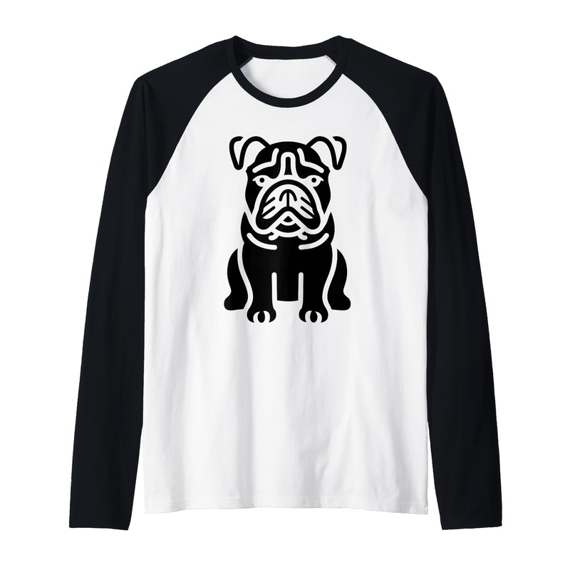 FUUNY Cute Bulldog Minimalist Dog Simple Bulldog Raglan Baseball Tee