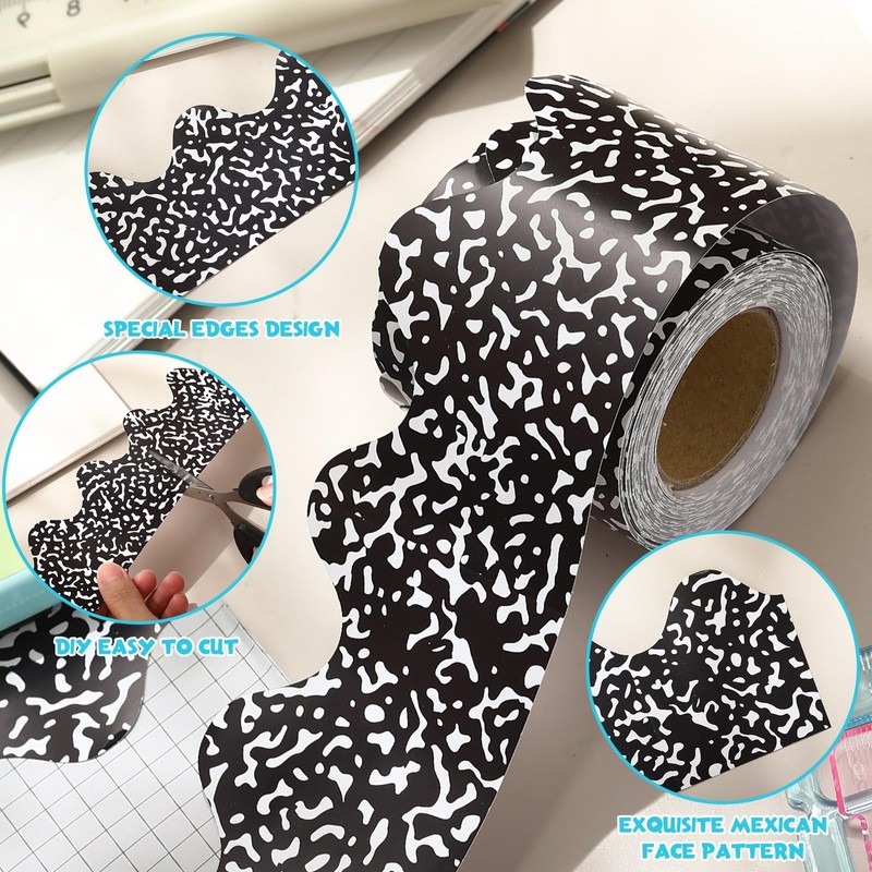 Fuutreo 32.8 ft Composition Notebook Bulletin Board Borders Back to School Bulletin Border Office Scalloped Trim for School Fiesta National Wedding Party Decoration