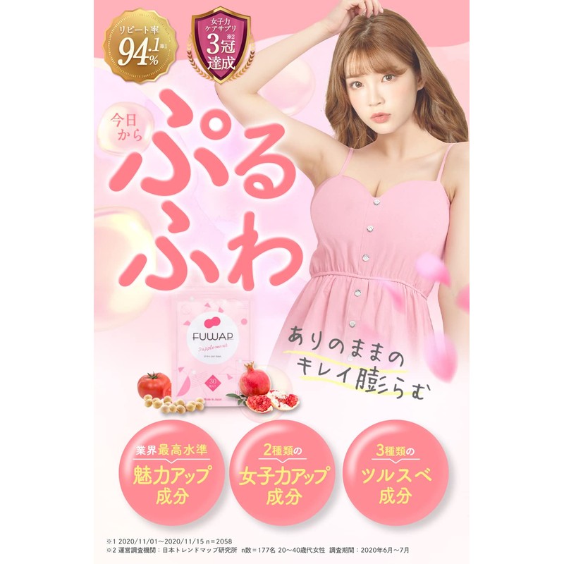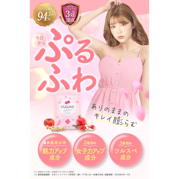 FUWAP フワップ 美容 ボディケア サプリ 女子力 ケア 内側から理想のカラダへ。(30粒/月) (30個 (x 2))