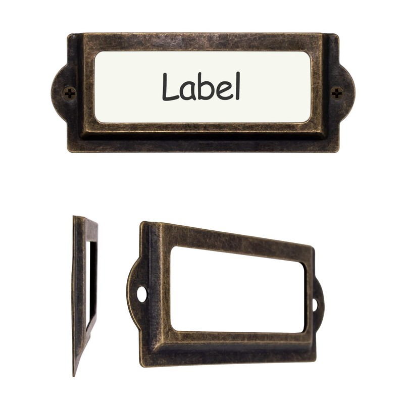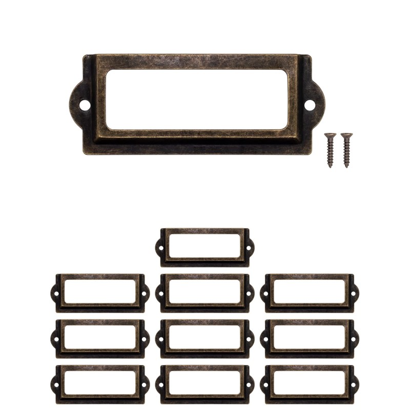 FUXXER 10 x Label Windows, Apothecary Cabinets, Card Holder, Antique Bronze Design, 83 x 33 mm