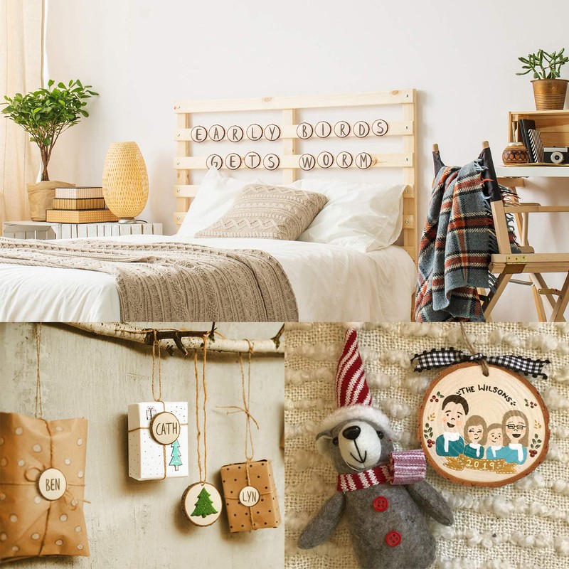 - Easy to use: You can hang hang the wood slices easily with a predilled small hole and attached jute twine and red-white cotton twine, 33 feet for each. Also, adopt upgraded drying technology and adopt scientific control of moisture ratio in wood slices, to prevent the wood from drying or cracking.
