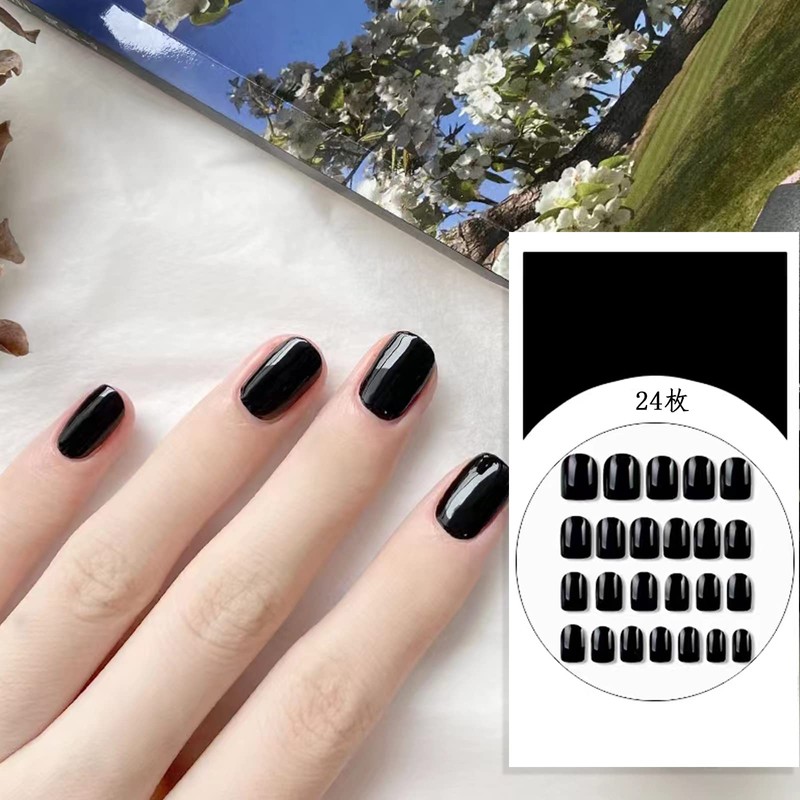Fuyunohi Nail Tip, Black, Short False Nails, Set of 24, Double Sided Tape, Black, Plain, Scene Pull, Nail Tip, Sticker, Strong, Nail Item, Easy to Apply, Durable, Convenient, Office, Unique, Cool