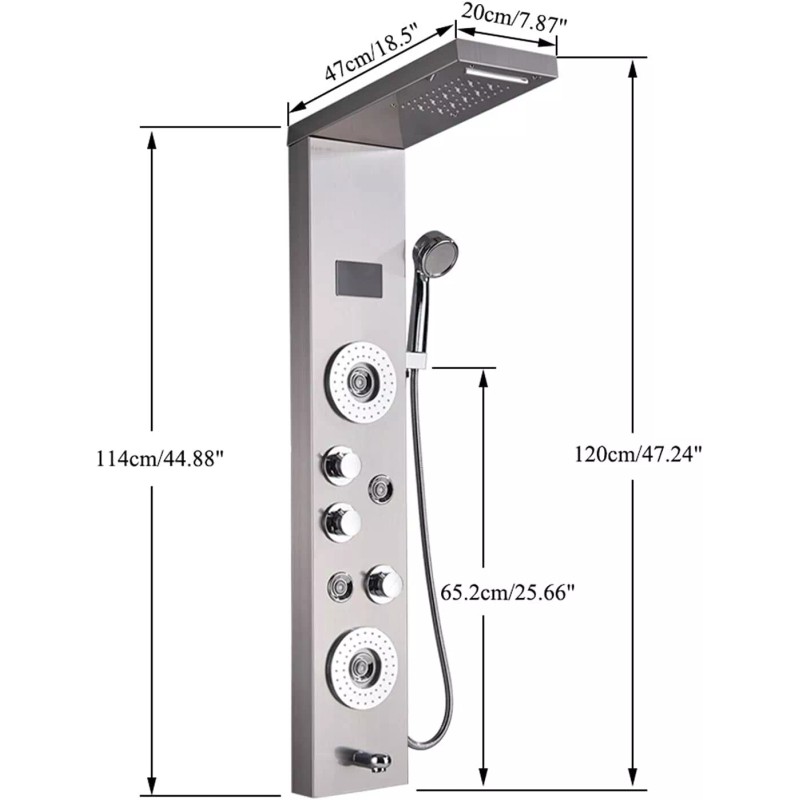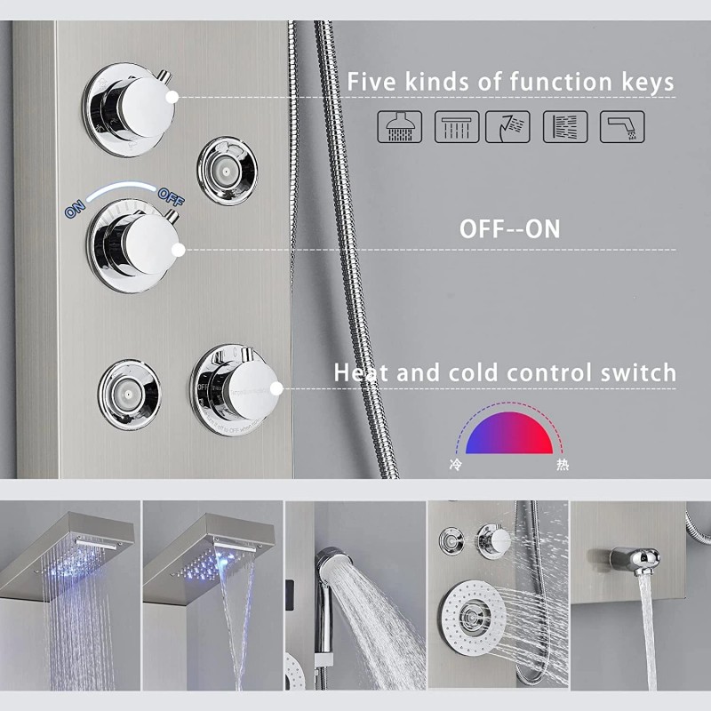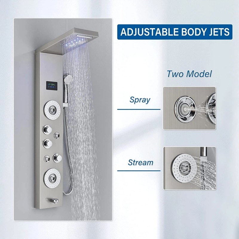 - -Panel Material: SUS304 Stainless Steel-Finish: Fingerprint-free Brushed Nickel shower system