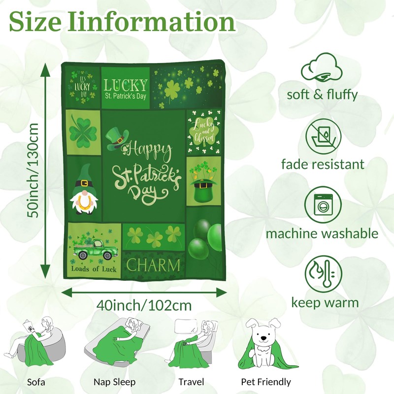 - Perfect Gift:This St. Patrick's Day throw blanket makes a delightful gift for family and friends. Use it as part of your St. Patrick's Day decorations, or surprise someone special with a blanket lucky brand they’ll treasure.