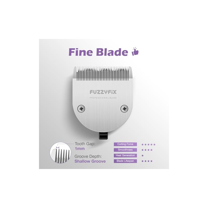 FuzzyFix Pre-Installed 1mm Fine Blade - Dog Clippers Replacement Blade Compatible with PC611VX, Detachable Pet Dog Grooming Clipper Stainless Steel Blade, 0.8-1.2mm Adjustable