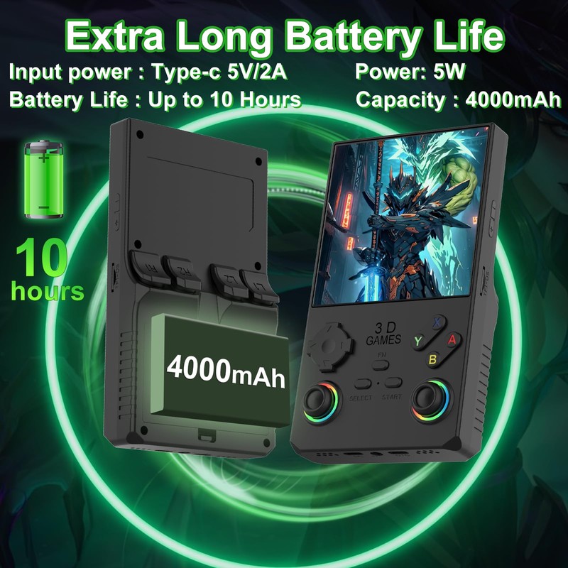 - Dual colorful RGB lighting joystickThis retro handheld game console comes with two 360-degree joysticks and colorful RGB backlight, allowing you to enjoy smooth game operation and stunning visual effects.