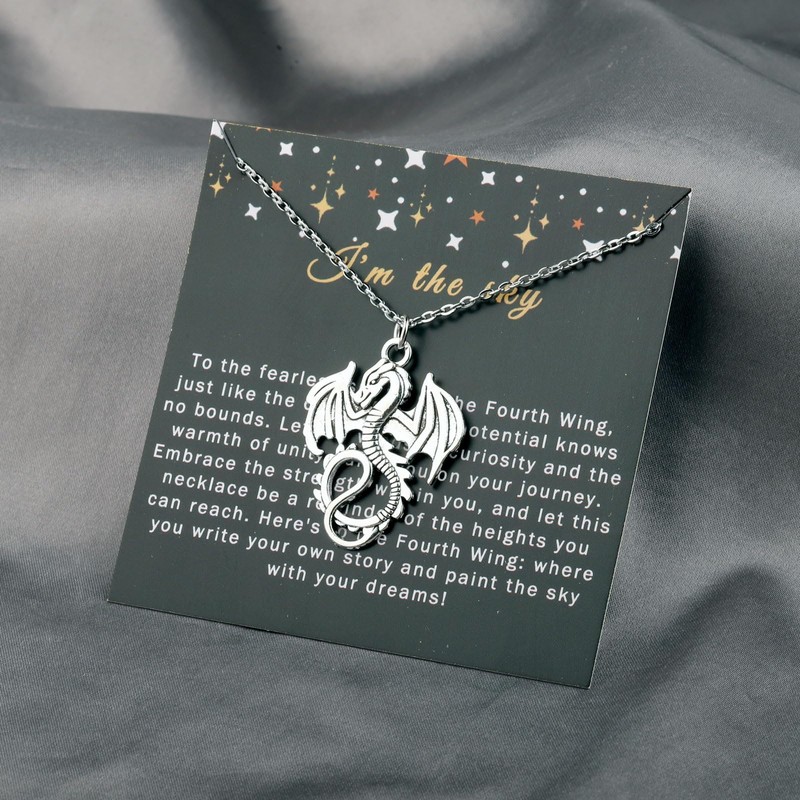 - 2.The card is engraved with:I'm the sky To the fearless spirits of the Fourth Wing, just like the open sky, your potential knows no bounds. Let the winds of curiosity and the warmth of unity guide you on your journey. Embrace the strength within you, and let this necklace be a reminder of the heights you can reach. Here's to the Fourth Wing: where you write your own story and paint the sky with your dreams!