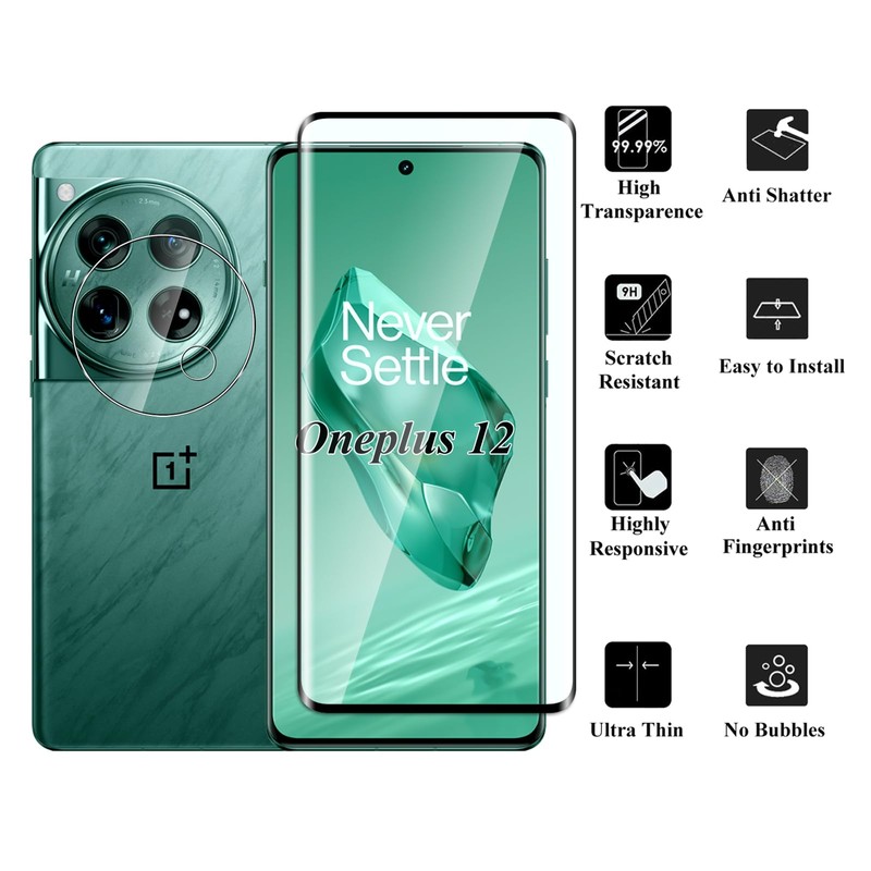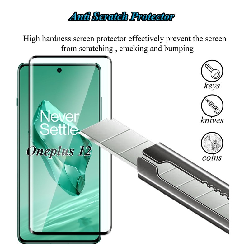 - Precise design: this tempered glass has been specially developed for Oneplus 12, with the super thin thickness, is made of high-quality 9H hardness glass, provides maximum protection against strong bumps, scratches and bumps.