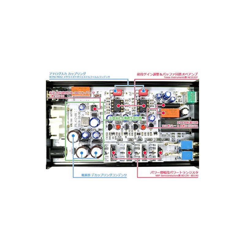- Front gain adjustment & buffer circuits with independent left and right amp