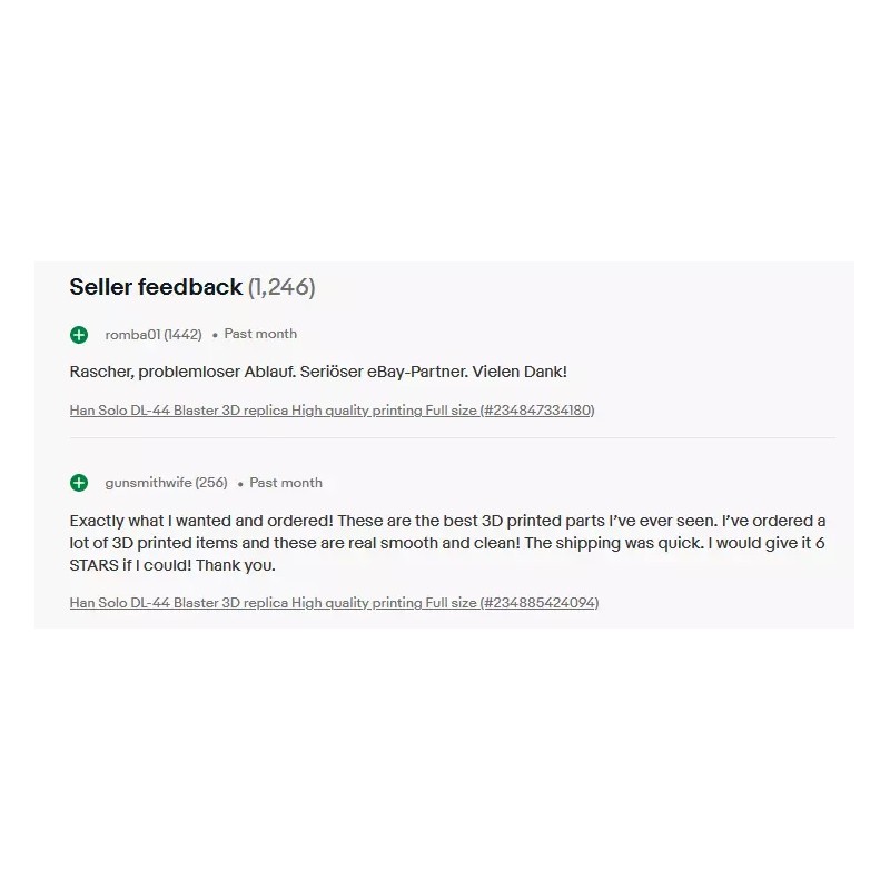 3. Mr. E. said...The seller was very responsive. There’s a lot of great detail in the 3D print. All the pieces fit together well. The most detailed Han Solo blaster print I’ve found.