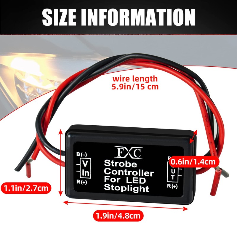 - This small block controller enhance your brake light function with fast-blinking 4 times ,slow-blinking 4 times, When flashing is completed, stay in the original steady light, This warns your following drivers with a catchy blinking light.