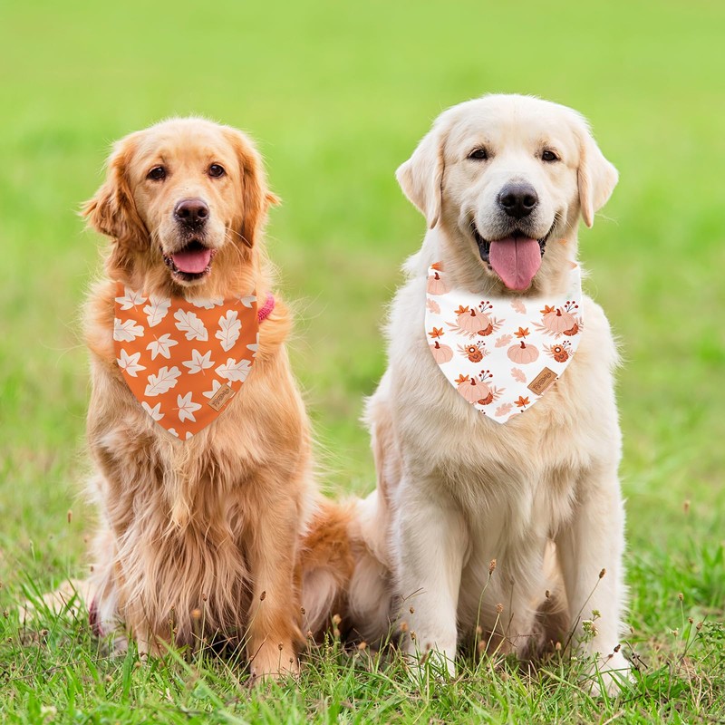 - DELICATE DESIGN: The dog bandanas adopt fall theme, patterned with pumpkin, maple leaves and plaid against watercolor style, make them look exquisite and festive, great accessories for your pets