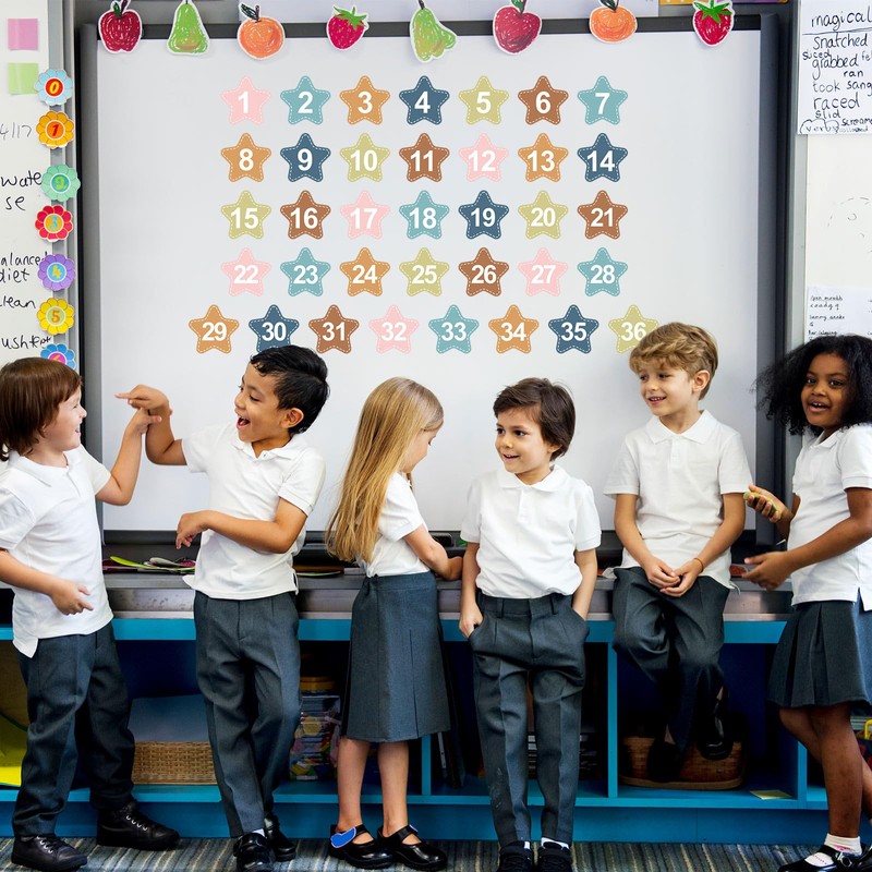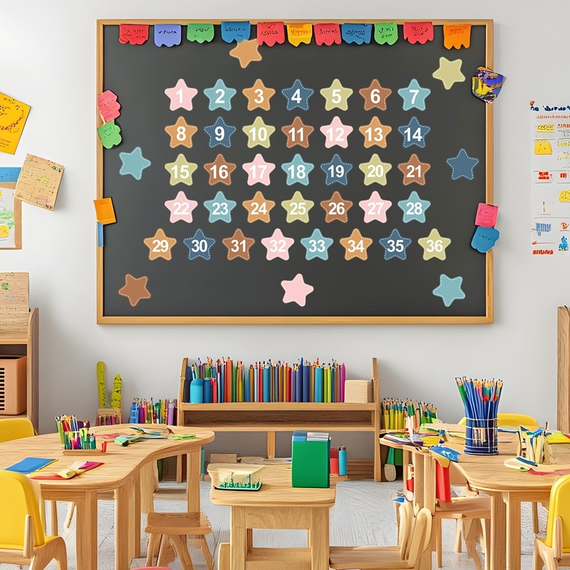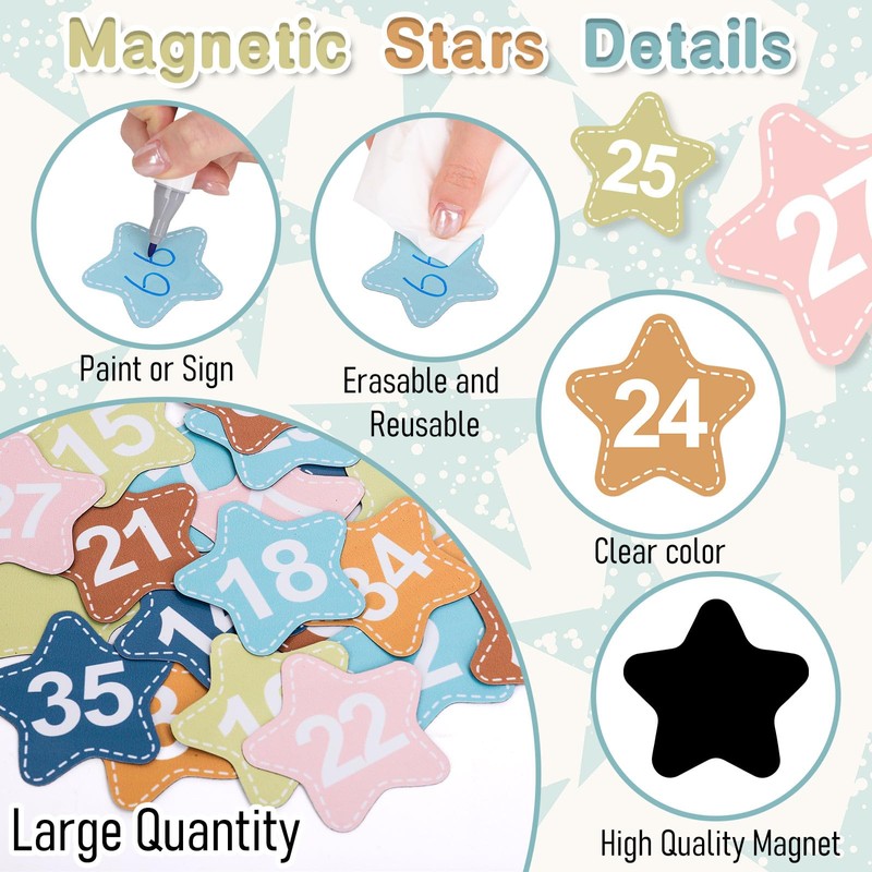 • BOHO DESIGN: The decorative magnets are designed in boho star shapes, 36 pcs are printed with number 1-36, 19 pcs are blank, you can easily write any words you want to express on the magnet, and also can make DIY, wonderful supplies for school teaching tools