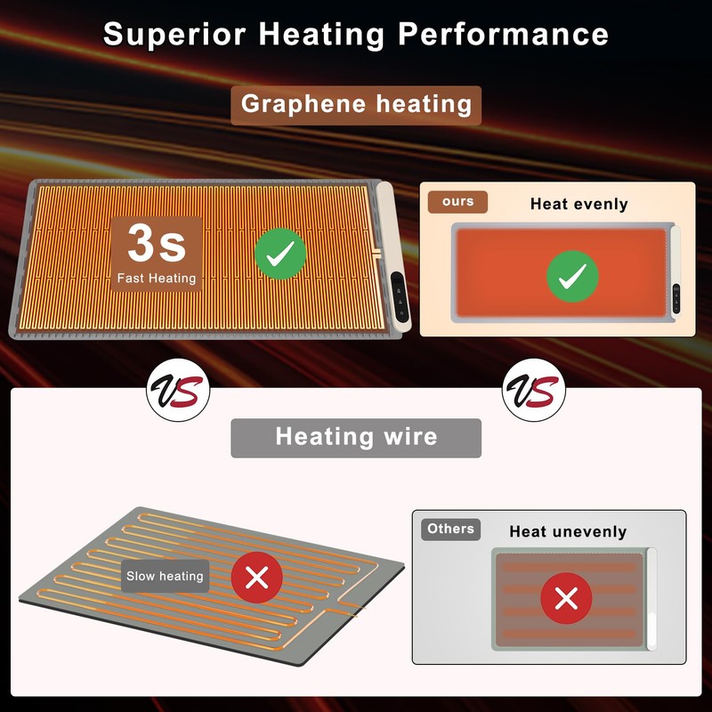 • Rapid Full-Surface Heating: Our food warming mat is powered by 450W and we adopt the graphene heating principle, which can generate heat quickly. Our thoughtfully designed graphene heating ensures quick and even distribution, no need to carefully position your food as it efficiently transfers heat.