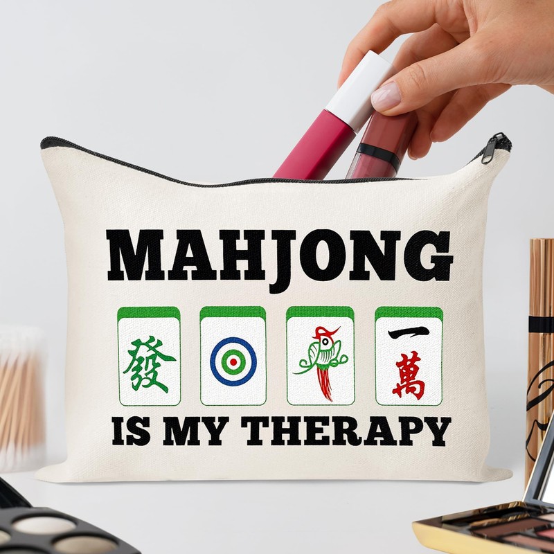 FZkuozougedd 4 lustige Mahjong-Make-up-Tasche, Mahjong-Liebhaber, Geschenke – perfekt für Mahjong-Enthusiasten.